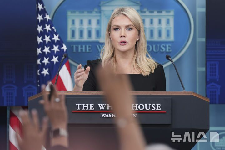 [워싱턴=AP/뉴시스] 캐럴라인 레빗 백악관 대변인이 19일(현지 시간) 워싱턴 백악관에서 열린 브리핑에서 발언하고 있다. 2025.06.20.