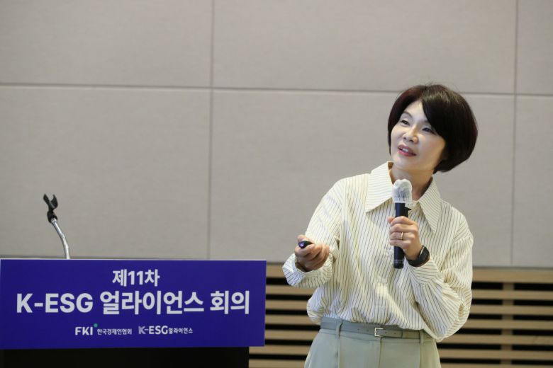 한국경제인협회가 제11차 K-ESG 얼라이언스 회의에 한정애 국회 기후위기특별위원회 위원장을 초청했다.