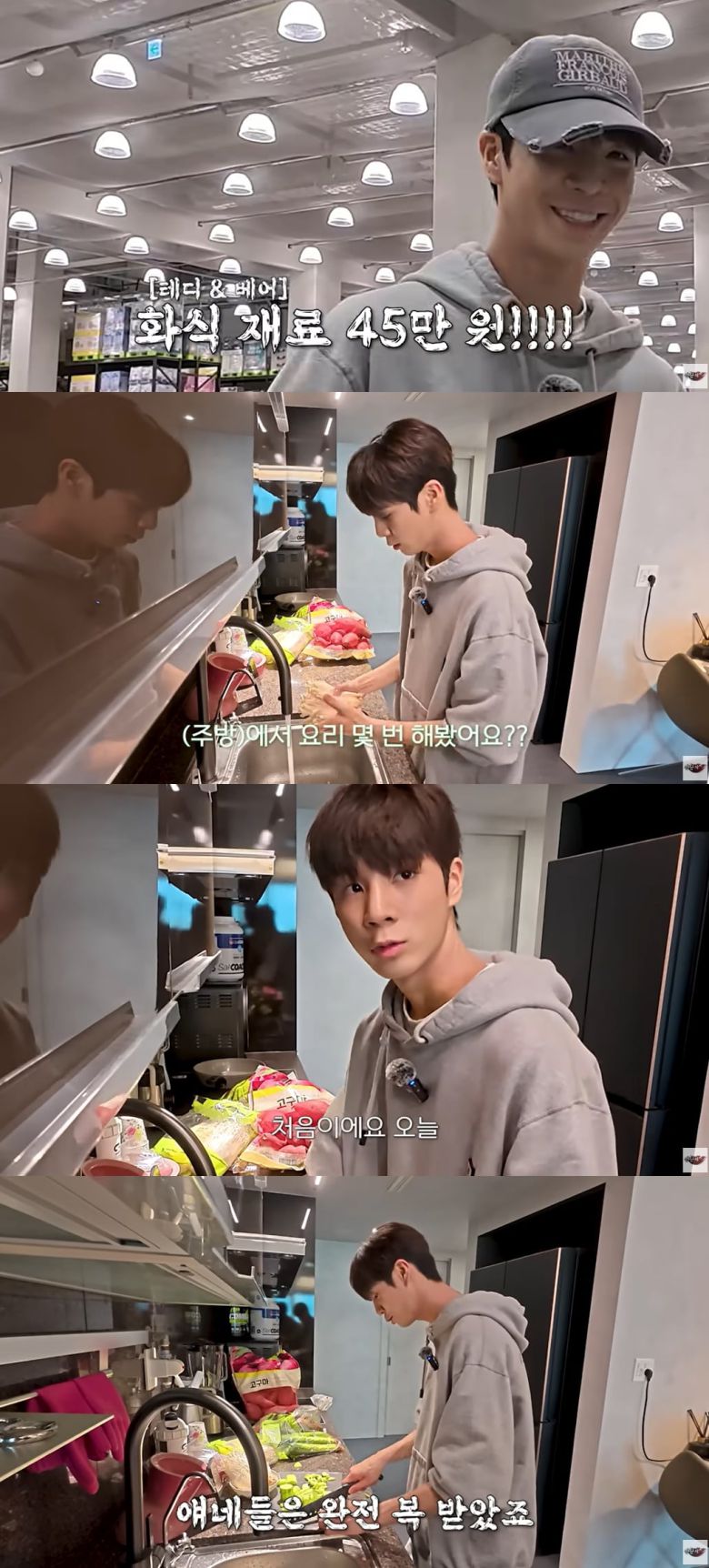 앞서 마트에서 45만 원 치 재료를 사 온 정동원은 "요즘 반려견들이 화식을 많이 먹더라. 개 팔자가 상팔자다. 테디, 베어는 복받은 강아지들이다"고 언급했다.