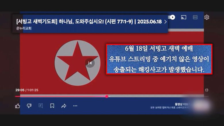 인공기 영상과는 다른 영상으로 알려졌고, 외부 해킹 여부는 확인되지 않았습니다.