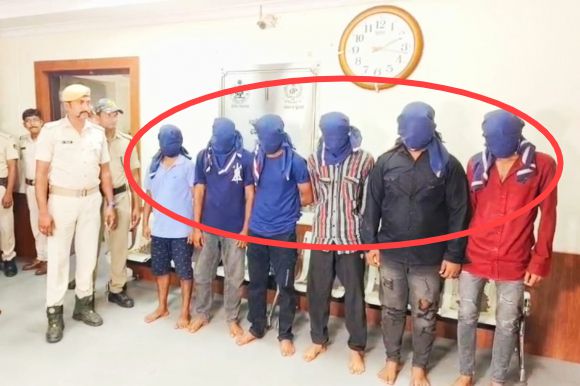 지난 15일(현지시간) 인도 동부 오디샤주(州) 고팔푸르 해변에 친구와 함께 놀러 갔던 20세 여대생이 집단 성폭행을 당했다. 사진은 현지 경찰에 체포된 용의자 10명 중 성인 6명. 고팔푸르 경찰서 제공 |
