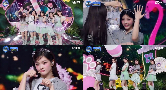 아일릿(윤아·민주·모카·원희·이로하)은 지난 19일 Mnet ‘엠카운트다운’에서 미니 3집 ‘밤’(bomb)의 타이틀곡 ‘빌려온 고양이’(Do the Dance) 무대를 꾸몄다.