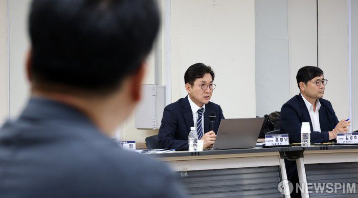 [과천=뉴스핌] 최지환 기자 = 홍창남 국정기획위원회 사회2분과위원장이 20일 오전 경기 과천시 정부과천청사 방송통신위원회(방통위)에서 열린 국정기획위원회 방통위 업무보고에서 모두발언을 하고 있다. 2025.06.20 choipix16@newspim.com