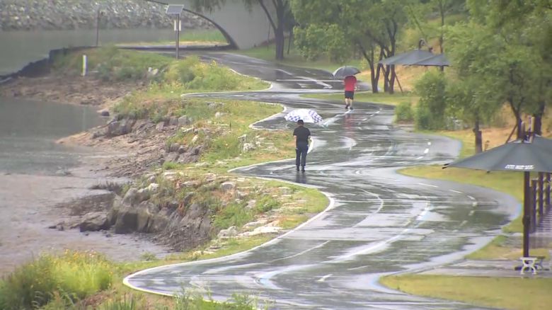 제 뒤로 하천이 흐르는 산책로가 보이실 텐데 아직 출입이 통제되고 있진 않습니다.