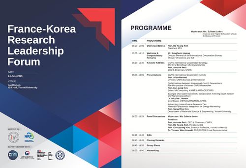 이번 포럼에서는 CNRS의 국제협력 전략과 한국-프랑스 간 협력 사례를 공유하고, 공동연구와 인력 교류 확대를 위한 구체적 방안을 모색할 예정이다.