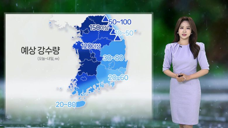 앞으로 내리는 비의 양은, 서울 등 수도권과 전북에 최대 150㎜ 이상, 그 밖의 지역도 120㎜가 넘는 많은 비가 내리겠습니다.