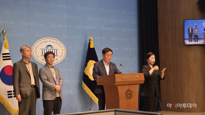 강득구 더불어민주당 의원(왼쪽 세번째)이 20일 기자회견을 열고 발언하고 있다. /심준보 기자 |