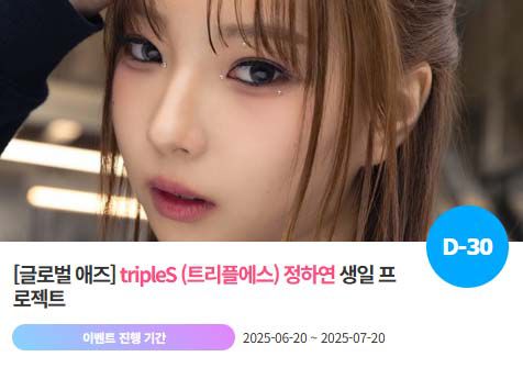 아이돌 주간 랭킹사이트 '팬앤스타'에서 20일부터 트리플에스 멤버 정하연 생일 축하를 위해 깜짝 서포트 이벤트를 진행하고 있다. 그의 생일을 축하하는 광고가 여러 장소에 게시되는 글로벌 팬심 프로젝트다.