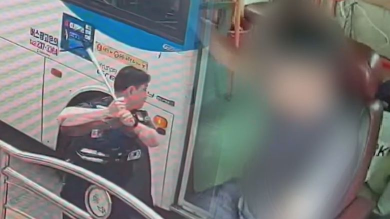 버스 기사가 뛰어 쫓아가며 세우라고 두드려보지만 멈추지 않습니다.