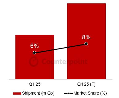 2025년 1·4분기 CXMT 시장 점유율 전망 (출하량 기준) |