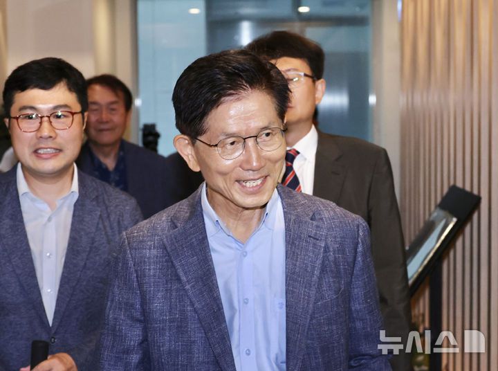 [서울=뉴시스]하지현 기자 = 김문수 전 국민의힘 대선 후보가 20일 전직 의원들과 오찬을 가졌다. 이날 오찬에서는 "당을 위해 멍에를 져 달라"며 차기 당 대표 선거에 나가달라는 요구가 나왔는데, 김 전 후보는 관련한 입장을 밝히지 않았다.
