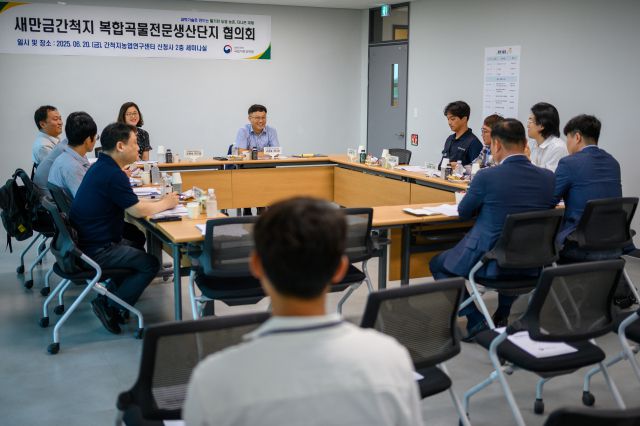 20일 농촌진흥청에 따르면 전북자치도 김제시에 있는 국립식량과학원 간척지농업연구센터에서 관련 기관과 영농법인이 참석한 가운데 '새만금 복합곡물전문생산단지'의 성공 조성을 위한 업무협의회를 개최했다.