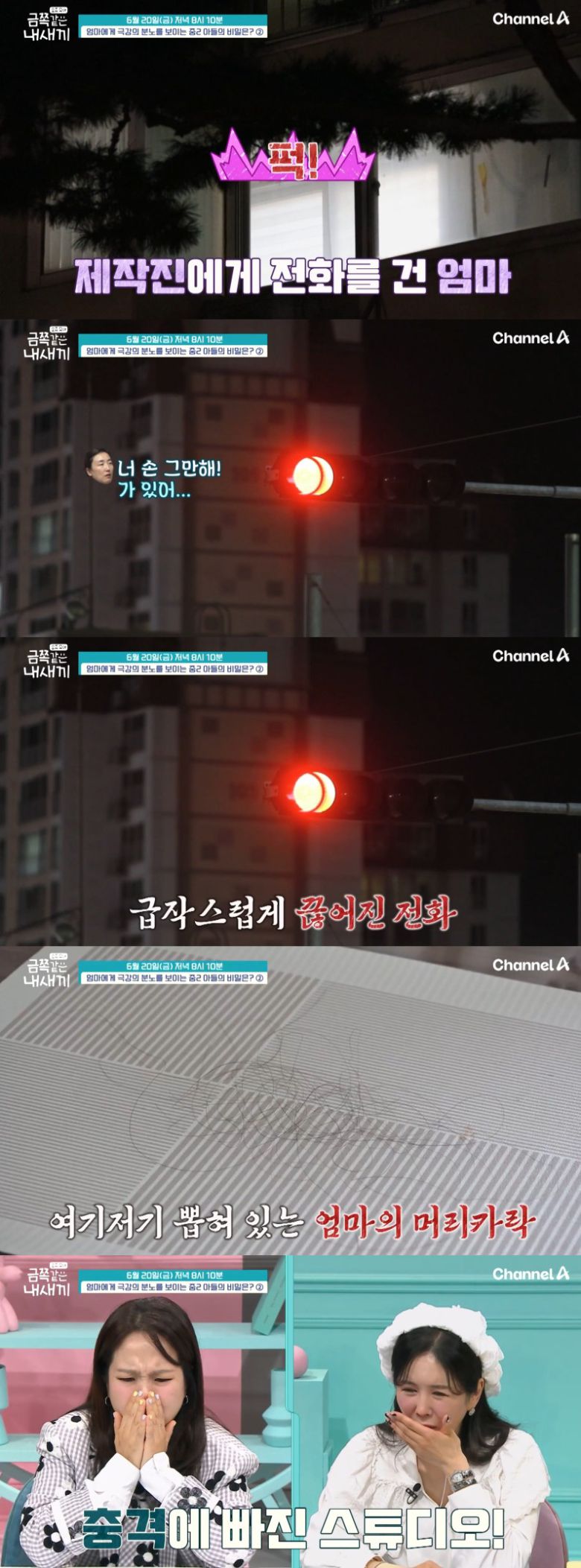엄마는 "알았어. 그만해. 너 손 그만해"라고 타일렀지만 금쪽이는 "전화 끊어. 끊어"라며 직접 전화를 '뚝'하고 끊었다.
