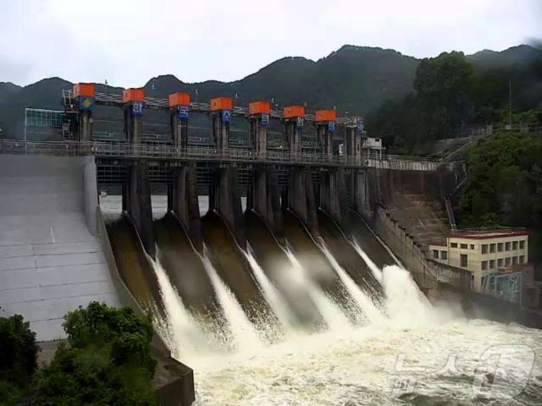 충북 괴산 괴산댐이 홍수 대비를 위해 20일 오전부터 전체 수문을 열고 방류를 시작했다.2025.6.20/뉴스1 ⓒ News1 이성기 기자 |