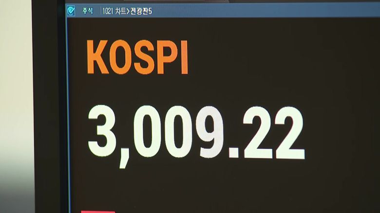 지수가 장중 3,000선을 기록한 것은 지난 2022년 1월 3일 3,010.77 이후 3년 5개월여 만입니다.