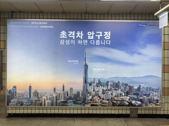 압구정역에 삼성물산이 게재한 광고. 한진주 기자