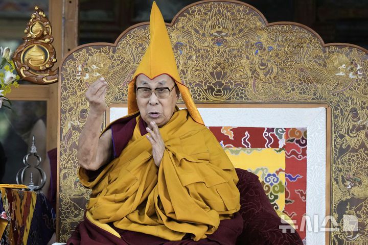 [다람살라=AP/뉴시스] ??티베트 불교의 정신적 지도자인 제14대 달라이 라마가 다음달 2일 후계자 관련 메시지를 발표할 예정인 가운데, 중국 최고 사법·공안 당국 책임자가 티베트족 밀집 지역을 방문해 민족 분열 시도에 대한 강경 입장을 밝혔다. 사진은 달라이라마가 지난 3월 14일(현지 시간) 인도 다람살라의 추글라캉 사원에서 설법 중인 모습. 2025.06.20 |