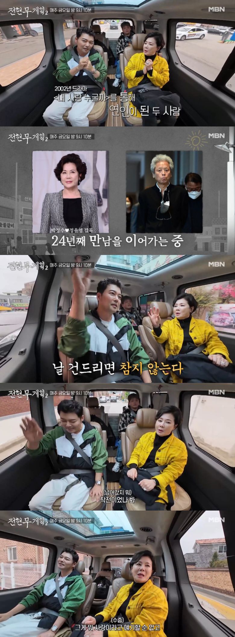 전현무는 박정수에게 24년째 열애 중인 정을용 감독과는 어떻게 만났는지를 물었고 박정수는 "작품하다가 만났다. 2001년에 '내 사랑 누굴까'로 만났다. 하도 나를 약 올리더라. 내가 리액션이 좀 있어서 누가 약올리면 못 참는다. 좀 건드리면 발끈하지 않나"라고 당시를 회상했다.