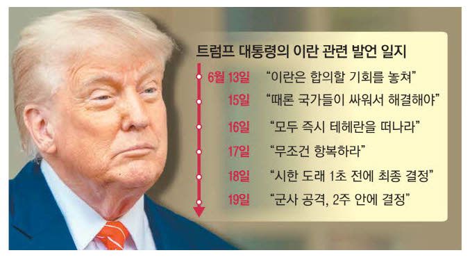 트럼프 "이란 공격 2주 안에 결정"… 핵포기 시한 못박았다
