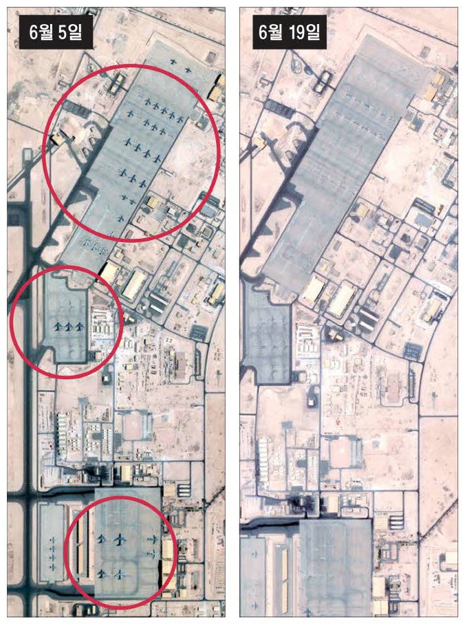 트럼프 대통령이 이란 공격을 고민하는 동안 카타르 내 미군 기지에 있던 군용기 수십 대가 이동 조치됐다고 AFP통신이 이날 보도했다. 마크 슈워츠 랜드연구소 국방연구원은 "(이번 조치가) 미국 병력에 가해지는 위험을 줄이고자 한 것"이라고 설명했다.