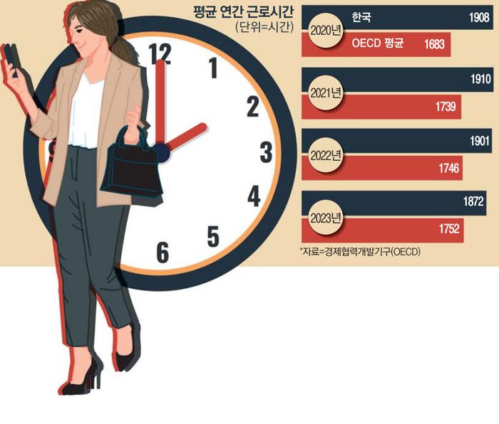 재계는 정부의 근로시간 단축 방침에 심각한 우려를 표시하고 있다. 한국의 근로시간이 경제협력개발기구(OECD) 평균보다 긴 것은 사실이지만, 노동생산성이 OECD 회원국 중 최하위에 머물고 있는 만큼 근로시간 단축에 앞서 노동생산성을 먼저 올려야 한다는 것이다.