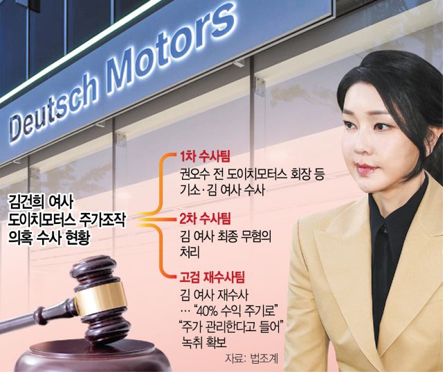 20일 법조계에 따르면 김 여사의 도이치모터스 주가조작 혐의 재수사를 맡은 서울고검 수사팀은 최근 미래에셋 압수수색에서 “블랙펄에 계좌를 맡기고 40% 수익을 주기로 했다”는 취지의 내용이 담긴 녹음 파일을 확보했다. 수사팀은 강제수사을 통해 김 여사와 당시 증권사 직원이 2009~2012년 통화한 녹음 파일 수백 개를 확인했다. 40% 수익 약정 외에 “(블랙펄이) 주가를 관리한다”는 취지의 김 여사 발언도 있는 것으로 전해진다. 문재인 정부 당시 수사를 담당했던 1차 수사팀과 지난해 수사를 진행했던 2차 수사팀은 해당 녹음 파일을 찾지 못했다. 4년 6개월간 이어진 수사에서 이 녹음 파일이 발견되지 못한 것은 미래에셋 계좌를 통한 거래는 김 여사가 주로 하던 전화 주문이 아닌 홈트레이딩시스템(HTS)으로 이뤄졌기 때문이다. 당시 검찰이 이상 증후가 있는 계좌를 들여다보기는 했지만 미래에셋 계좌 거래는 HTS를 통해 이뤄지면서 당시 검찰은 녹음 파일 존재를 인지하지 못한 것으로 보인다.