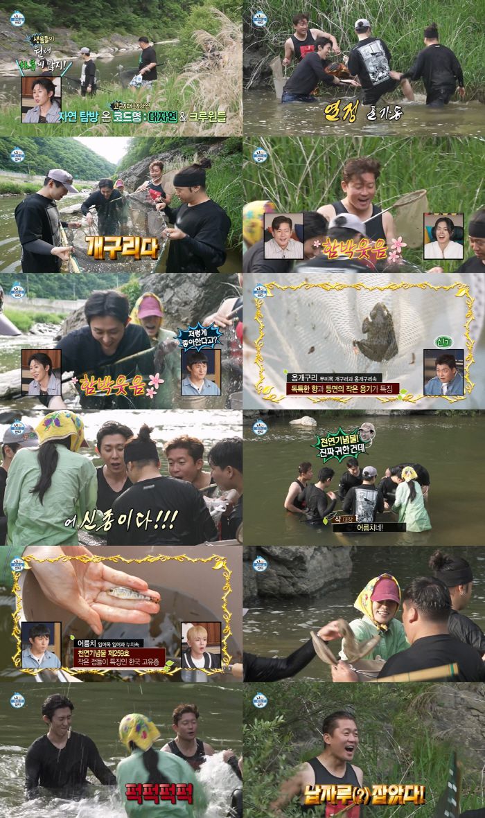 이들은 물고기를 잡는 그물망을 들고 우거진 수풀 속 숨어 있는 생물들을 찾기 시작한다. 마침내 그물망 속에서 개구리를 발견한 김대호와 코드쿤스트는 환호를 지르며 행복해한다. 아이처럼 좋아하는 김대호의 모습에 기안84는 "저렇게 좋아한다고?"라며 웃음을 터트린다.