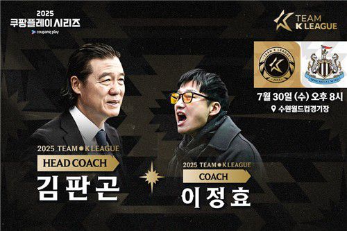 팀 K리그가 출전하는 '2025 쿠팡플레이 시리즈' 1차전은 오는 7월 30일 오후 8시 수원월드컵경기장에서 열리며, 티켓은 25일부터 사전 예매, 27일부터 일반 예매가 쿠팡플레이를 통해 진행된다.