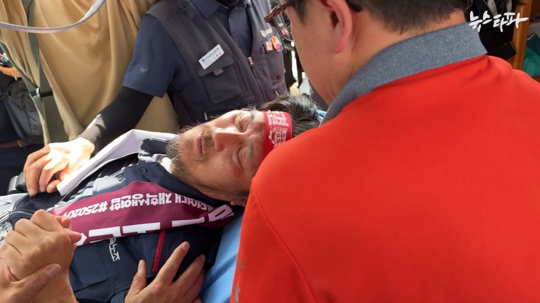 김 지회장은 이날 기자회견 직후 조선하청지회 간부와 변호인, 경찰과 함께 구급차에 올랐다. 97일간 굽어 있던 몸을 들것 위에 눕히고 녹색병원으로 이동했다. 병원에서 건강 상태를 확인한 이후, 경찰 조사를 받을 예정이다.
