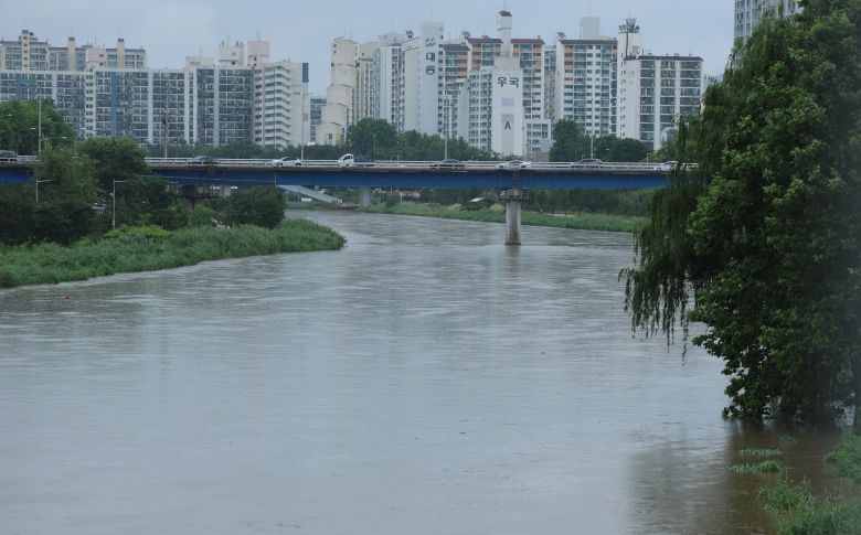 20일 강한 호우로 서울 중랑천의 하천 수위가 상승해 있다. /뉴스1
