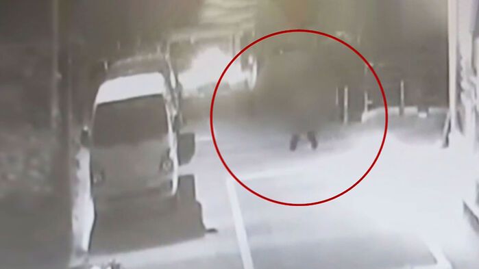 차 문을 열더니 무언가를 보고 그대로 얼어붙습니다.