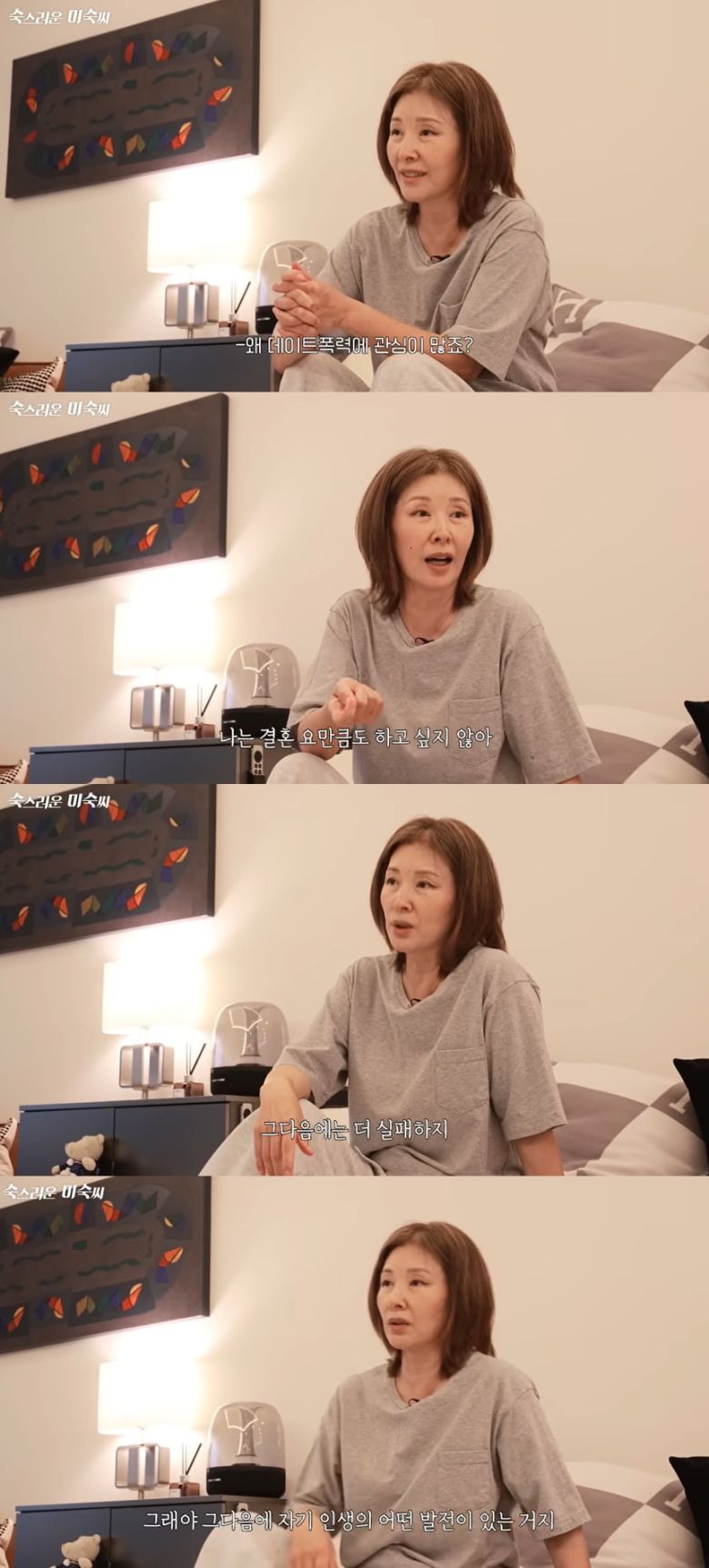 이어 앞서 영상에서 결혼에 대한 질문을 했던 것을 언급하자 이미숙은 "나는 결혼을 요만큼도 하고 싶지 않다. 댓글에도 '결혼 뭐 하러 하냐'고 써 있더라"며 속내를 드러냈다.
