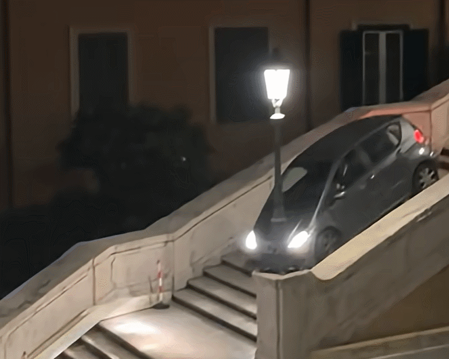 이탈리아 로마 관광 명소인 '스페인 계단' 위로 차량을 몬 80대 운전자가 현지 경찰에 붙잡혔다. /사진=유튜브 갈무리 |