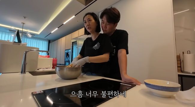 장윤정은 묵은지와 손두부, 당면 재료를 공개했다. 장윤정은 "달걀 두 알 정도 들어간다"라고 말했다. 장윤정과 도경완은 데친 두부와 김치, 당면을 넣고 만두소를 만들었다.