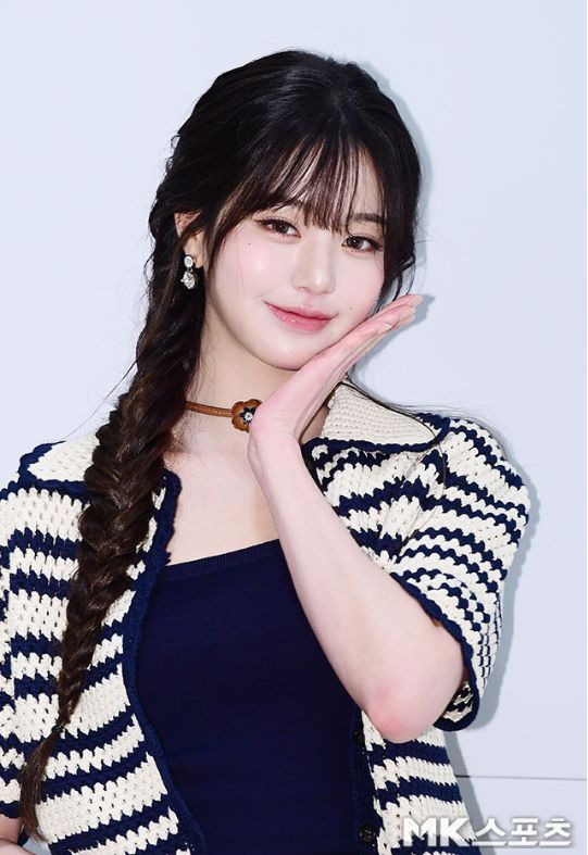 반면 장원영은 네이비 스트라이프 니트 셋업에 크롭탑, 그리고 아이보리 메리제인 슈즈로 절제미의 정수를 보여줬다. 롱 피쉬테일 브레이드와 미묘한 톤의 메이크업은 그녀 특유의 고급스러운 분위기를 극대화했고, 작은 액세서리 하나까지 계산된 듯한 정교함이 돋보였다. 그녀는 마치 조각처럼, 한 치의 흔들림 없는 완성형 비주얼을 선보였다.