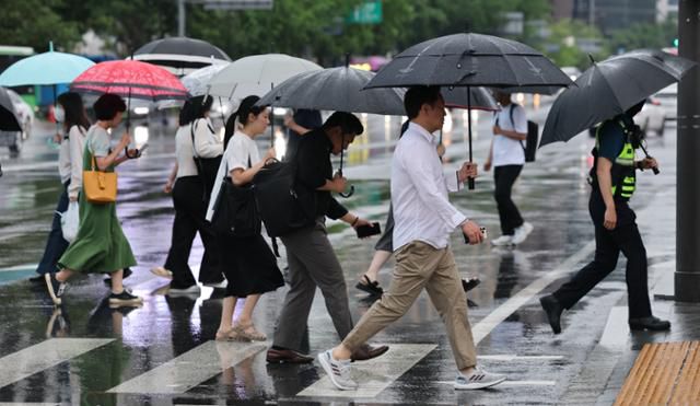 20일 서울 광화문거리에서 우산을 쓴 시민들이 출근하고 있다. 뉴스1 |