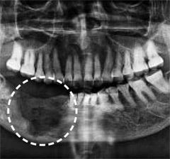 골다공증 치료제 투여 부작용으로 턱뼈가 괴사한 모습.  경향신문 자료사진