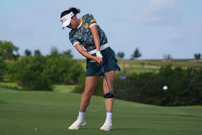 방신실은 21일(한국시간) 미국 텍사스주 프리스코의 필즈랜치 이스트 코스(파72)에서 열린 미국여자프로골프(LPGA) 투어 메이저 대회 KPMG 위민스 PGA 챔피언십 2라운드에서 1타를 잃었다. 중간합계 이븐파 공동 8위로 6언더파 단독 선두 지노 티띠꾼(태국)과 6타 차다.