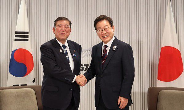 이재명 대통령과 이시바 시게루 일본 총리가 지난 17일(현지시각) 캐나다 앨버타주 캐내내스키스 주요 7개국(G7) 정상회의장에서 열린 한일 정상회담에서 악수하고 있다. 김태형 기자 xogud555@hani.co.kr |