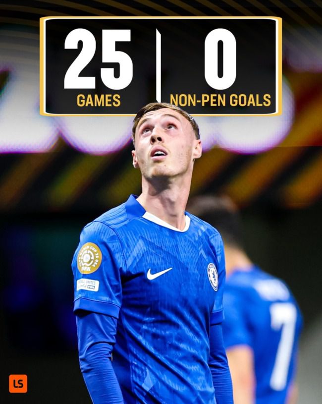 축구 매체 '라이브 스코어'는 팔머의 필드골이 25경기 동안 없다는 점을 조명했다. 팔머는 첼시와 국가대표 경기를 뛰면서 필드골을 넣지 못하고 있다. 팔머의 마지막 필드골은 올해 1월 본머스전. 이후로 팔머는 첼시와 잉글랜드 국가대표 유니폼을 입고 25경기를 뛰었는데 1골 5도움을 기록했다. 그 1골도 리버풀전서 넣은 페널티킥 득점이었다. 첼시의 소년가장이었던 팔머의 침묵이 길어지고 있다.