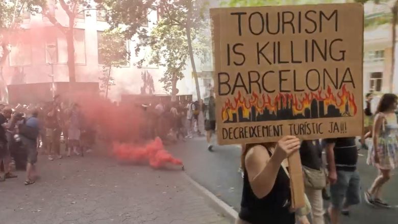 스페인에서 오버투어리즘, 이른바 과잉 관광에 반대하는 시위가 열렸습니다.