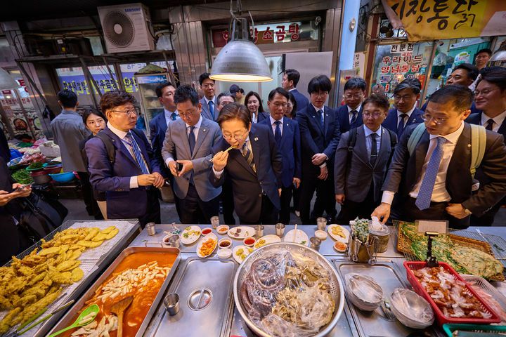 [서울=뉴시스] 이재명 대통령이 지난 20일 울산 언양알프스시장 방문 모습을 21일 SNS에 공개했다. (사진=이재명 대통령 SNS) 2025.06.21. photo@newsis.com *재판매 및 DB 금지