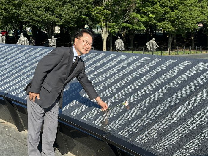 [스포츠서울ㅣ춘천=김기원기자]육동한 춘천시장은 20일(현지시간) 미국 워싱턴 D.C. 내 내셔널 몰(National Mall)에 위치한 한국전쟁 참전용사 기념비를 찾아 헌화하고 묵념하는 시간을 가졌다.