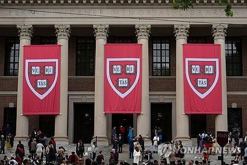 도서관에 걸려있는 하버드대학의 교기 연합뉴스 |