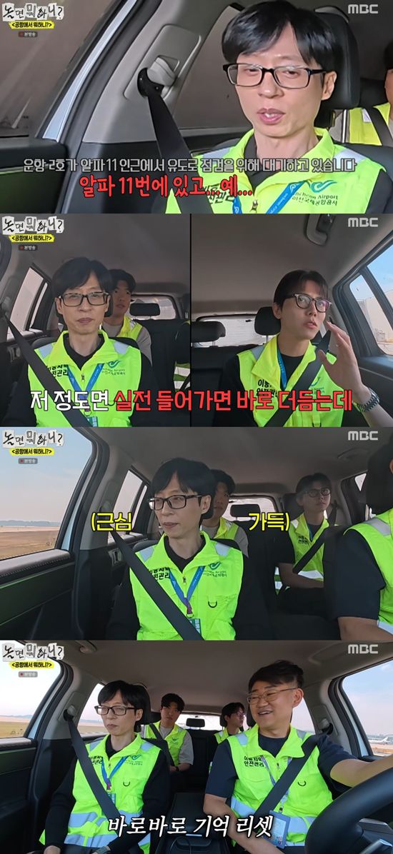 (엑스포츠뉴스 문채영 기자) 유재석이 공항 무전에 긴장하는 모습을 보였다