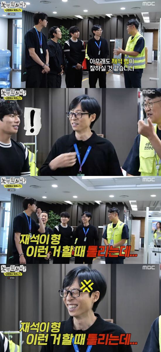 인천공항 내부에 들어선 출연진들이 역할을 나눴다. 방송 진행 경험이 많은 유재석은 무선 교전을 추천받았다. 주우재는 "재석이 형 이런 거 할 때 좀 전다. 긴장 많이 하는 스타일이다"라고 말해 웃음을 자아냈다.