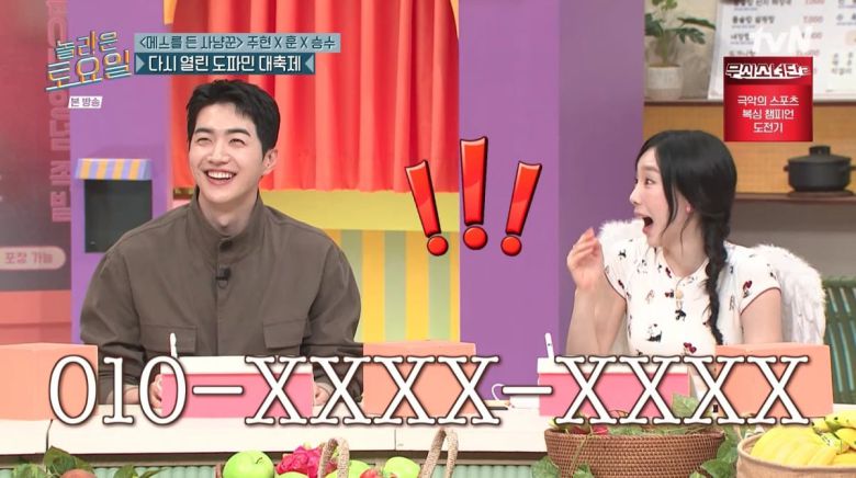 강훈, 방송 중 실제 전화번호 공개했다…♥짝사랑 태연에 직진('놀토')