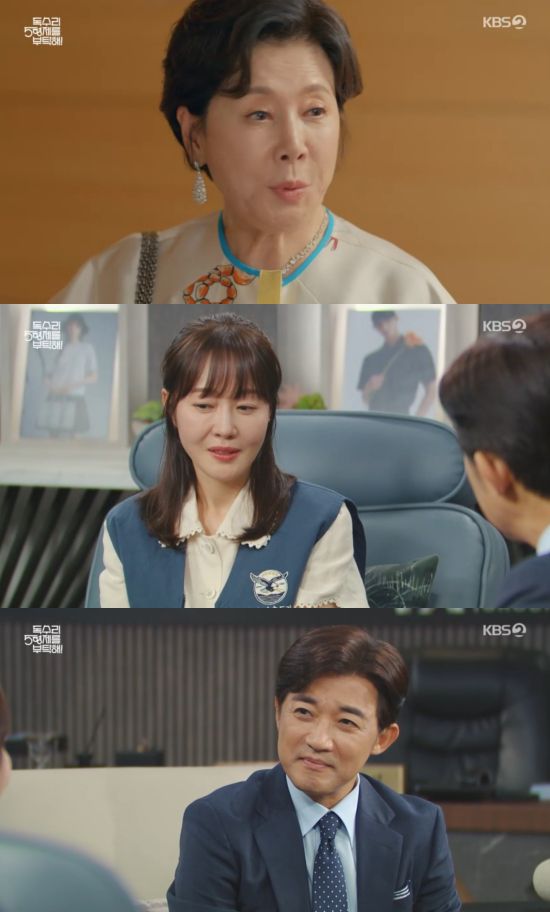 21일 방송된 KBS 2TV 주말드라마 '독수리 5형제를 부탁해!'(이하 '독수리 5형제') 41회에서는 마광숙(엄지원 분)이 한동석(안재욱)의 장모(박정수)와 마주친 모습이 그려졌다.