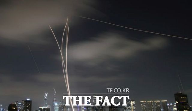 외교부는 21일 기준 이란 체류 우리 국민 등 56명이 투르크메니스탄으로 무사히 대피했다고 밝혔다. 사진은 이스라엘 텔아비브 상공에서 지난 18일(현지시간) 이스라엘 방공 시스템 아이언돔이 이란의 미사일을 요격하기 위해 가동된 모습. /AP. 뉴시스 |