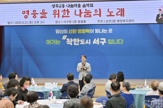 김이강 광주 서구청장이 지난 21일 서구청 들불홀에서 열린 보훈의 달 기념 '상무2동 나눔마을 음악회'에서 인사말을 하고 있다. 광주 서구 제공 호남취재본부 신동호 기자 sdhs6751@asiae.co.kr<ⓒ투자가를 위한 경제콘텐츠 플랫폼, 아시아경제(www.asiae.co.kr) 무단전재 배포금지>이 기사의 카테고리는 언론사의 분류를 따릅니다.0공유하기